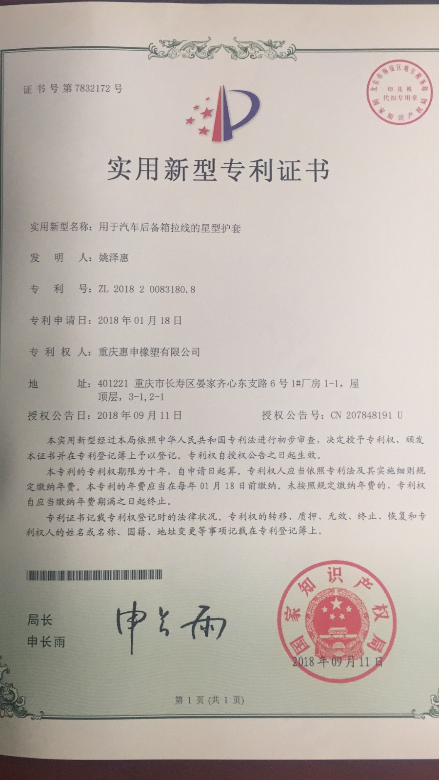 重庆惠申橡塑有限公司成立于2005年,占地面积5000m²,现有员工100人。工厂坐落于重庆市十佳工业园区-长寿区经济技术开发区内。 主要研发、生产、销售汽车各类热塑性弹性体、聚酯弹性体、聚氯乙烯弹性体、尼龙软管等挤出类产品和各类橡胶零件,年产量能力1200万米、2000万件。主要应用于汽车推拉索、换挡拉索、门锁线、摇窗机、天窗软轴、座椅软轴领域上。